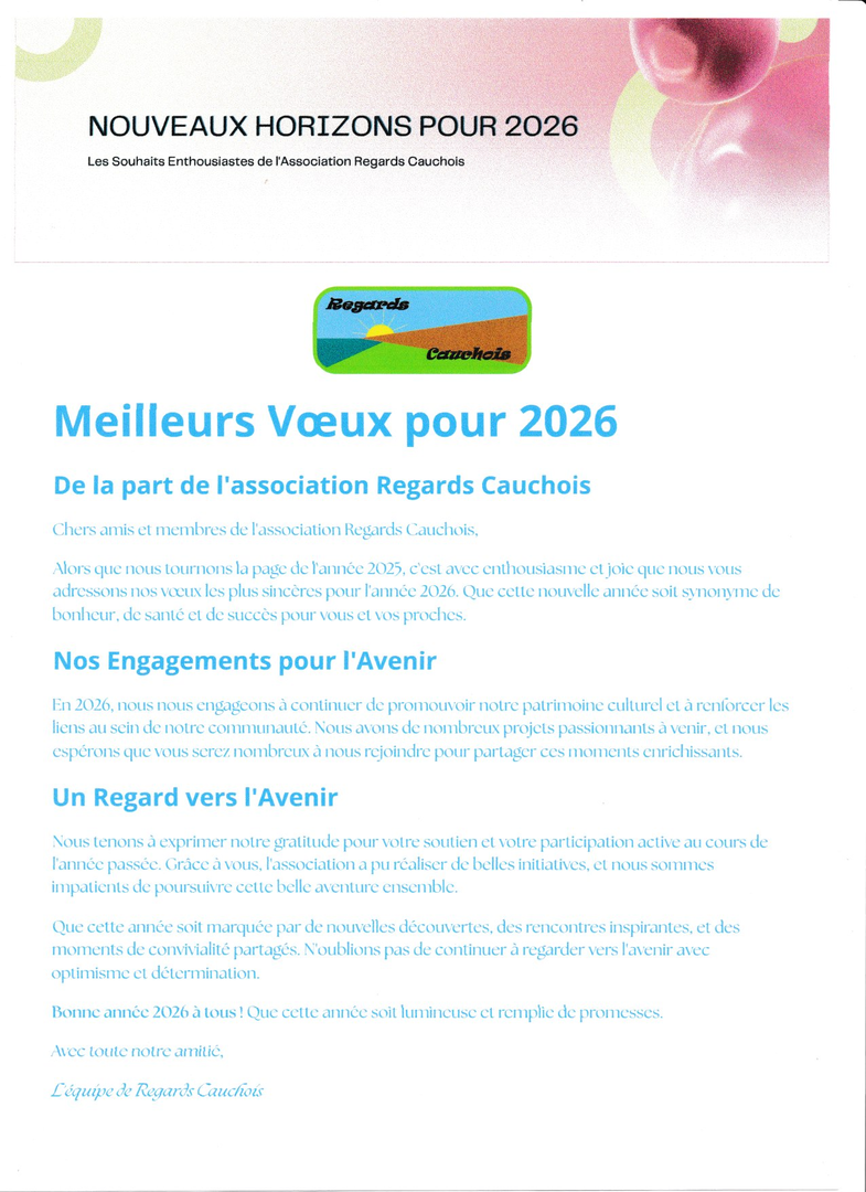 L’association REGARDS CAUCHOIS ; a été créé fin 2010 par quelques personnes soucieuses de Faire vivre le patrimoine local.
